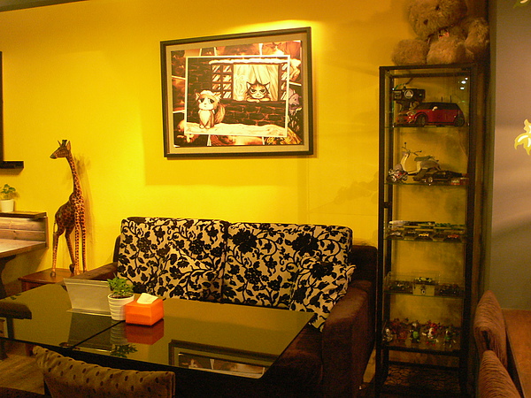 太多女性的東西 所以 玻璃櫃中是男生的收藏品 車子和公仔